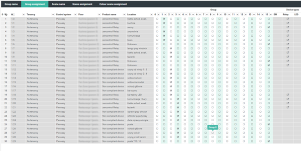 Jak napisałem powyżej urządzenia są posegregowane nawet w poszczególnych typach np w grupie ECD urządzenia są podzielone według obowiązującej w DALI-2 normy IEC 62386. I tak oddzielenie mamy instancje typu push button oddzielnie light sensor itd. Zencontrol wprowadził do programu także opcje profili, które określają rodzaj działania kontrolera oraz urządzeń sterujących w określonych godzinach. Np. w godzinach pracy panel klawiszowe rozjaśniają lub przyciemnieją oświetlenie a po godzinach pracy uruchamiają tryb sprzątania – oświetlenie na 100% na godzinę, później przygaszenie ostrzegawcze na 10% i wreszcie wyłączenie.