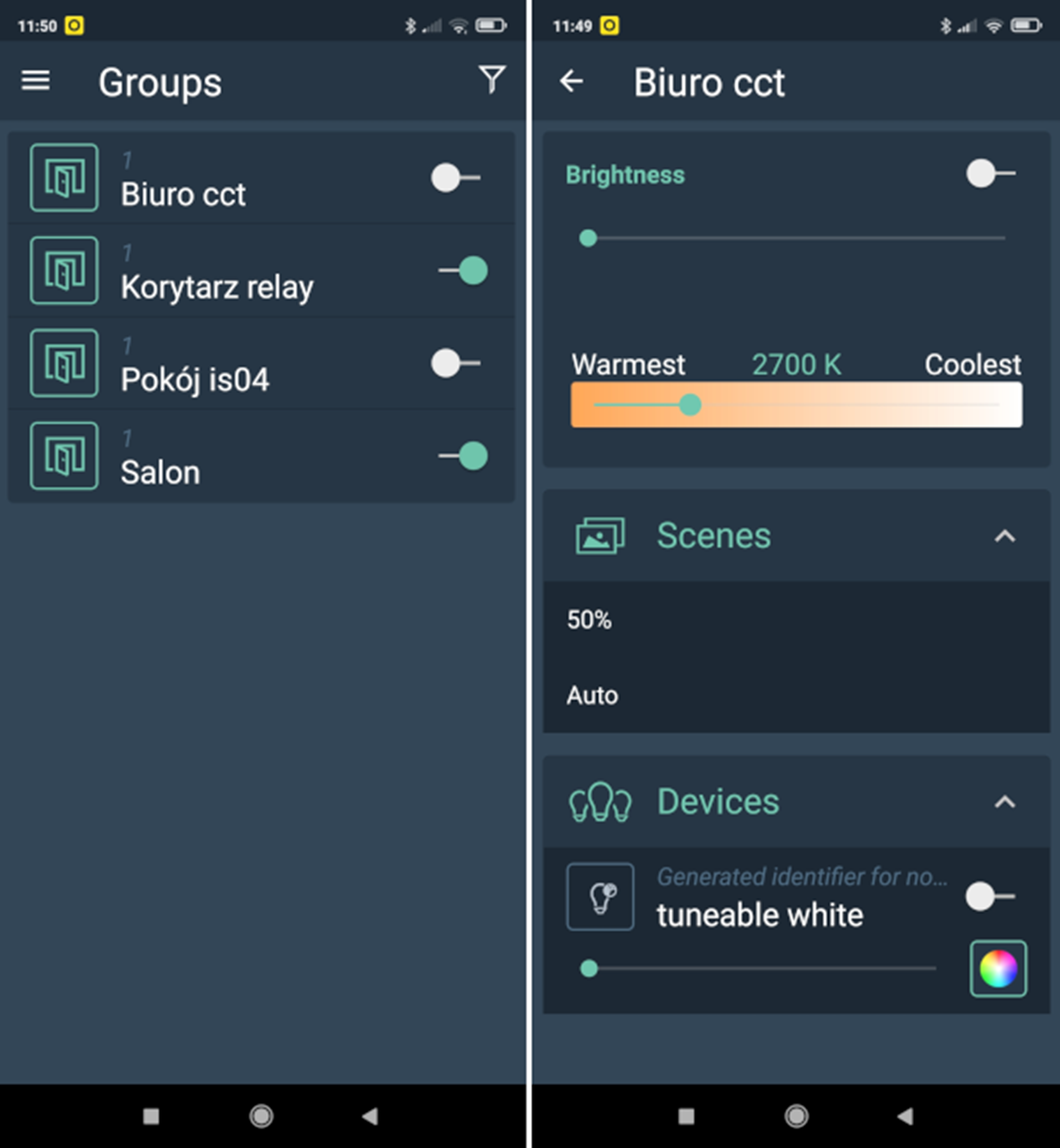 Poprzez protokół UDP mamy także możliwość stworzenia własnej aplikacji w formacie .json. Możemy jako tło ustawić plan pomieszczenia i nałożyć na niego suwaki lub przyciski. Aby uruchomić aplikację pobraną ze sklepu Play potrzebujemy pliku .json oraz grafiki.