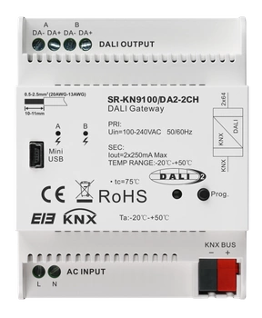 Bramka DALI KNX Plus do systemu KNX DALI2 i do systemów DALI PRO SR-KNX9100-DA2-2CH Sunricher