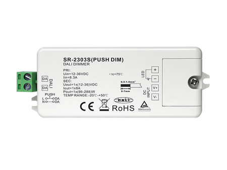 SR-2303S(Push Dim) | 12-48VDC | 1x8A@12-36VDC 1x4@48VDC | 1x(96-288)W@12-36VDC 1x92W@48VDC | 95x37x20mm |