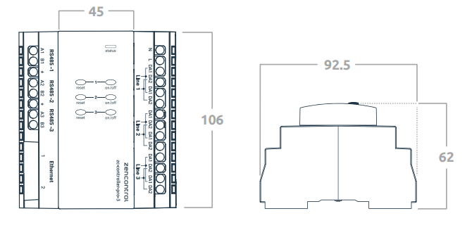 Router, kontroler aplikacji DALI-2 zc-controller-pro-3 to inteligentna jednostka sterująca do tworzenia sieci połączeń magistral DALI-2. Kontroler obsługuje trzy magistrale DALI. Zarządza całym systemem oświetleniowym i pozwala na rozbudowę sieci połączeń, kontrolując polecenia pomiędzy komponentami systemowymi znajdującymi w magistrali. Zintegrowana bramka Ethernet pozwala na zaprogramowanie kontrolera poprzez chmurę oraz połączenie z innymi kontrolerami tworząc rozbudowany system sterujący.