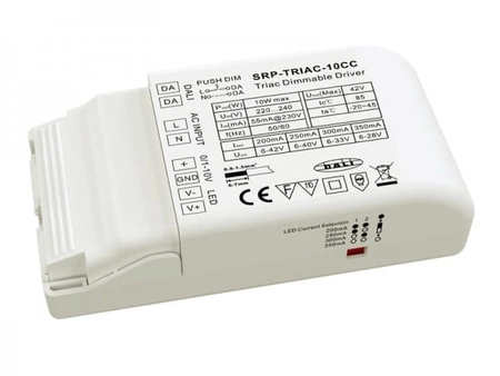 SRP-TRIAC-10CC to zatwierdzony przez ENEC 10W triac ściemnialny sterownik LED z 1-kanałowym stałym prądem wyjściowym i regulowanym