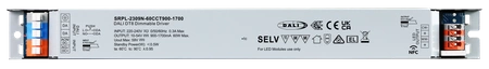 SRPL-2309N-60CCT900-1700 to 60W ściemnialny zasilacz LED o długiej metalowej obudowie, certyfikowany przez DALI-2 DT8. Został zaprojektowany z 1 kanałem stałego prądu o regulowanym prądzie od 900 mA do 1700 mA, co sprawia, że nadaje się do lamp LED o różnym prądzie. Posiada wejście 220-240VAC. Współczynnik mocy zasilacza może wynosić ponad 0,98, a sprawność jest wyższa niż 87%. Umożliwia płynne i głębokie ściemnianie do 0,1% bez migotania i szumów. 1 adres DALI można przypisać ręcznie za pomocą przycisków, a jego wartość wyświetlana jest na wyświetlaczu cyfrowym lub przypisać automatycznie przez master DALI. Zgodny z IEC62386-101:2014, 102:2014, 207 ed.2, ten zasilacz DALI jest kompatybilny z urządzeniami kontrolnymi i aplikacyjnymi certyfikowanymi przez DALI-2.