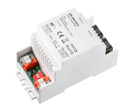 Brama DALI SR-GW-EDA z interfejsem Ethernet (IP) montowana na szynie DIN Sunricher