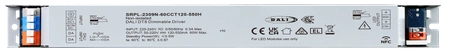 SRPL-2309N-60CCT120-550H to certyfikowany zasilacz LED DALI-2 DT8 w długiej metalowej obudowie o mocy 60W z możliwością ściemniania Non-SELV NFC. Jest zaprojektowany z jednokanałowym wyjściem prądowym o regulowanym zakresie od 120mA do 550mA, co sprawia, że jest odpowiedni dla lamp LED o różnych prądach. Jest przeznaczony do zasilania o napięciu AC 220-240V. Współczynnik mocy zasilacza może wynosić ponad 0,97, a wydajność jest wyższa niż 87%. Umożliwia płynne i głębokie ściemnianie do 0,1% bez migotania. 1 adres DALI można przypisać ręcznie za pomocą przycisków i wyświetlić na cyfrowym wyświetlaczu lub przypisać automatycznie przez masterów DALI. Zgodny z IEC62386-101:2014, 102:2014, 207 ed.2, i jest kompatybilny z kontrolerami aplikacji i urządzeniami kontrolnymi certyfikowanymi zgodnie z DALI-2.