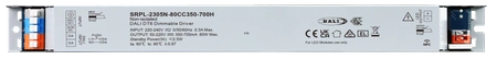 SRPL-2305N-80CC350-700H to certyfikowany zasilacz LED DALI-2 w długiej metalowej obudowie o mocy 40W Non-SELV z możliwością ściemniania NFC. Jest zaprojektowany z jednokanałowym wyjściem prądowym o regulowanym zakresie od od 350mA do 700mA, co sprawia, że jest odpowiedni dla lamp LED o różnych prądach. Jest przeznaczony do zasilania o napięciu AC 220-240V. Współczynnik mocy zasilacza może wynosić ponad 0,97, a jego sprawność jest wyższa niż 87%. Umożliwia płynne i głębokie ściemnianie do 0,1% bez migotania. 1 adres DALI można przypisać ręcznie za pomocą przycisków i wyświetlić na cyfrowym wyświetlaczu lub przypisać automatycznie przez masterów DALI. Zgodny z IEC62386-101:2014, 102:2014, 207 ed.2, i jest kompatybilny z kontrolerami aplikacji i urządzeniami kontrolnymi certyfikowanymi zgodnie z DALI-2.