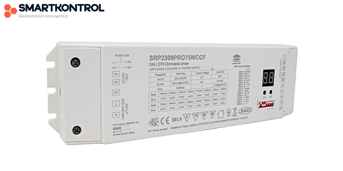W pamięci jest zapisanych też wiele informacji producenta jak numer GTIN, wersja oprogramowania itp. Jak widzimy zasilacz DALI to nie jest proste urządzenie elektroniczne tylko skomplikowany układ z możliwością programowania. Mając do dyspozycji takie zasilacze w oprawach zintegrowanych lub zasilacze do taśm LED możemy stworzyć zarówno prosty ale i bardzo skomplikowany system sterowania oświetleniem. Jest na rynku wiele kontrolerów DALI, które w pełni mogą wykorzystać drzemiące w tych zasilaczach możliwości. Są modele zasilaczy DALI do sterowania dwoma barwami LED: ciepłą i zimną. Mieszanie tych barw w proporcjach odpowiednich do danej pory dnia pozwala na niesamowity komfort oświetleniowy. Zaawansowany sterownik zgodnie z cyklem dobowym człowieka (circadian rhythm) ustali odpowiednia barwę światła oczywiście posługując się zasilaczem DALI pracującym w trybie DT8. Producenci zasilaczy DALI cały czas udoskonalają swoje produkty. Są już w sprzedaży zasilacze czterokanałowe do sterowanie oprawami RGBW w wersji stałonapięciowej oraz stałoprądowej.